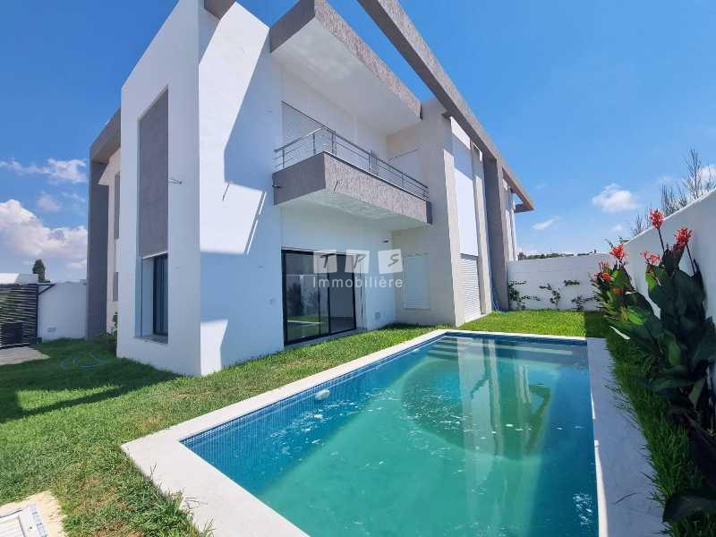 A vendre chez l'agence TPS Immobilière Hammamet, une jolie villa avec piscine bâtie sur un terrain de 281m² , bien située à l'entrée d’Hammamet à la zone Craxi.