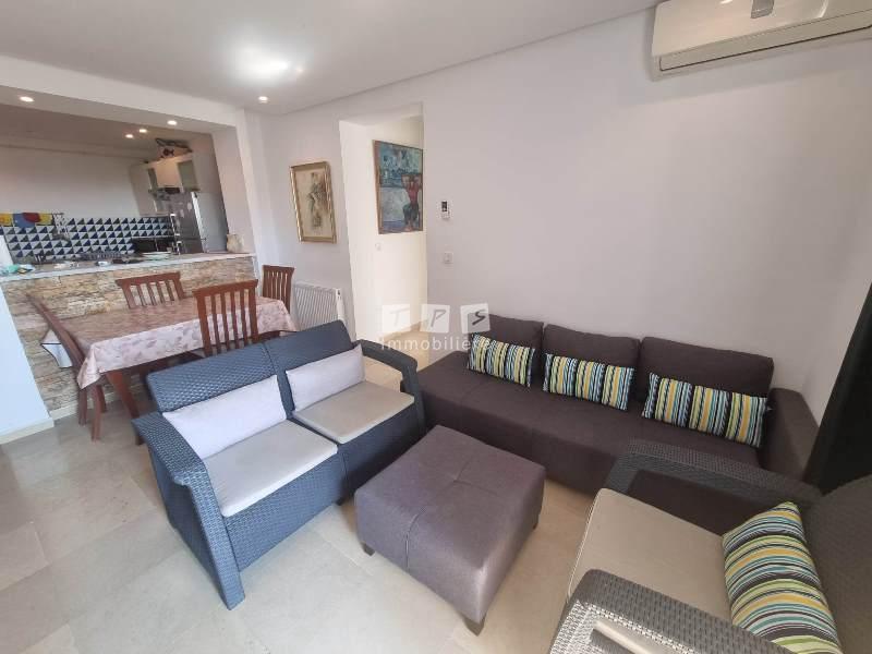 A louer à l'année chez TPS IMMOBILIERE Hammamet sauf Juillet et Août, un bel appartement au 2 éme étage richement meublé dans une résidence gardée,situé à Hammamet zone la gare.il est proche de toutes les commodités de vie.